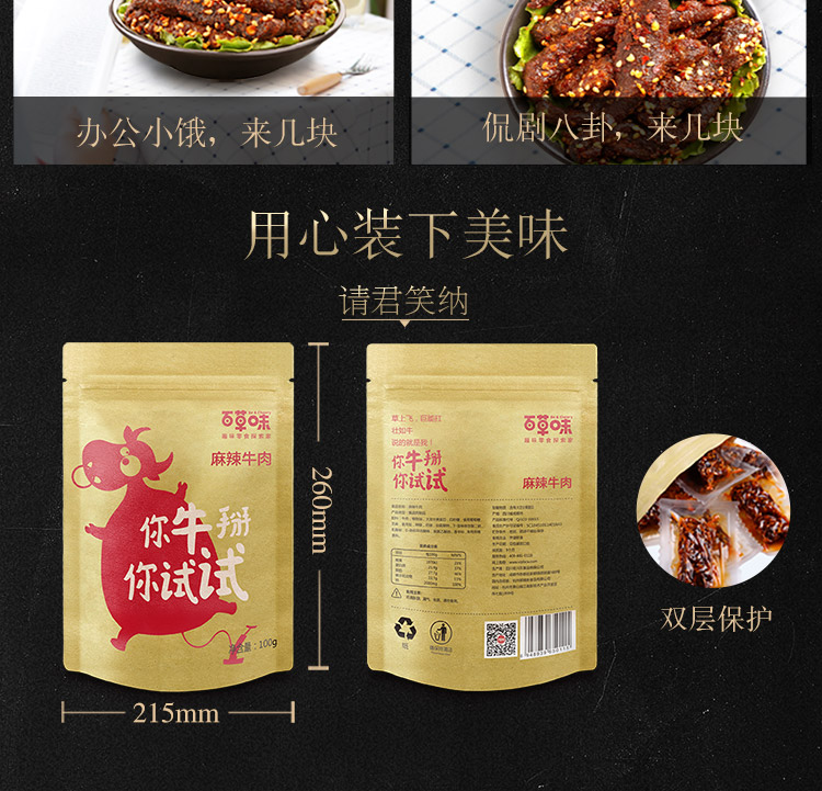 - 百草味 特产牛肉干 休闲零食 麻辣牛肉100g/袋
